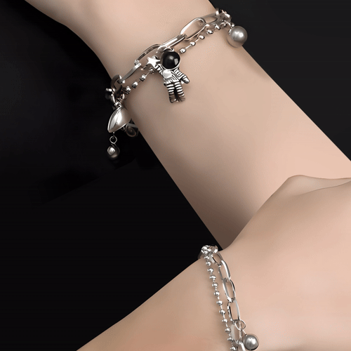Introducing our enchanting Heart & Astronaut Double Layer Bracelet, a beautiful blend of romance and whimsy. Perfect for expressing your unique bond, this bracelet is not just a piece of jewelry but a symbol of the stars aligning in love. Designed with a delicate balance of cuteness and fashion, it’s an ideal accessory for any romantic occasion or daily wear.